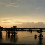 We were finally on the road and I drove the first 4 hour stretch. Chris took some amazing photos out the window of the sunset over the swamp lands.