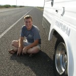 We made it out of Texas. The rest of our drive was pretty uneventful until we realized that we were in the middle of NO where. We finally found a town to stop in and buy gas at that was under 4 dollars. We also stopped at Subway to get some food. It was WAYY better than any other Subway we had been too; they even had guacamole! After lunch, we realized the rv was making some funny noises so Chris stopped and changed the gear oil right in the middle of the auto zone parking lot making a HUGE mess. We stopped and took some nice scenery pictures and pictures of oil wells.