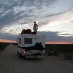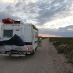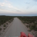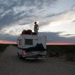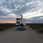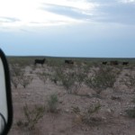 Well I was scared on the bumpy road at first and Chris was loving it. I was just scared something was going to break. We passed by a bunch of cows that were right next to the rv and also stopped to take pictures. It looked like we were basically driving into the sunset. We got out at one point and Chris said we were far enough into the middle of no where, so we decided to shoot the gun. It was crazy because this was my only second time shooting ever. We each shot once into the lighting on the Horizon and it was exhilarating.