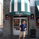 We rode the trolley and by this point, we were starving. Every restaurant that we could see was closed, so we asked the trolley driver if anything was open and he said he would take us to a nice hot dog/hamburger joint. He drives out of his route to drop us off at Chris’ Hot Dog Stand, in honor of Chris of course. After going in we realized that the hot dog stand opened in 1920 and they had to turn it into a restaurant because it was so good that it blocked up traffic. Well Chris and I tried both the hot dogs and hamburgers with the secret chili sauce and it was AWESOME.