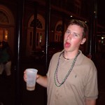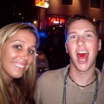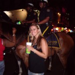 After dinner we went to a few bars on Bourbon Street with Tim. We spent most our time in the Cats Meow watching karaoke, hanging out on the balcony (where we saw a guy almost get his head taken off by a falling beer bottle) and basically just people watched (guy in striped shirt hit on this girl and her friend all night). We walked the streets and took pictures with the Police Officers on horses (they were basically a tourist attraction).