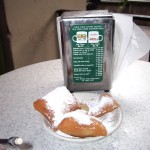 While we were shopping, Chris found this miller lite hat with a bottle opener built into it that he fell in love with, and decided not to buy. About ten minutes later he was already on ebay looking it up. After the French Market we went to Cafe Du Monde to get our famous beignets (which were deeelliiciouus).