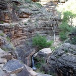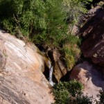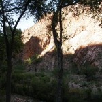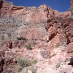 We get on the Bright Angel Trail around 5 am, about 2 hours later than they recommended. So we hike and hike and the trail is completely different than the trail we took down. This one passes by a few creeks and actually had a few trees at the beginning.