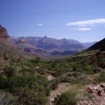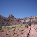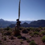 The sun started to get hotter and our stops became slightly more frequent. Yes we did get passed by a 15 year old boy hiking by himself (we think he was a boy scout trying to get a badge or something because he was hauling ass) And around 10:30 we were passed by this guy who was heading up the mountain. He stopped in our shady rest area and told us how he had ran down the bright angel trail and was now running up this trail AND he had left the same time we did in the morning. Some of these people are nuts; they made me feel really out of shape.