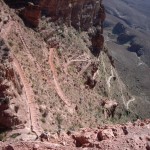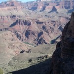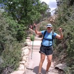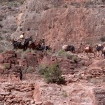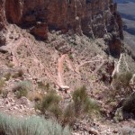 So we started hiking, and hiking, and we saw a few people in the zone on their way up. And down further we go. Chris kept looking at the gps to calculate how far we had gone and at one point, we asked this other group if they knew how long the trail was; they said “About 6 miles.” We see the amazing views of the canyon that this trail is known for and take some pictures. We saw mules carrying people and loads down and were pretty impressed with the two restroom stops. This trail has NO water on it so we packed over 4 liters for each of us. Once we got close to 6 miles, Chris and I were like “wow this wasn’t that bad, we weren’t even that exhausted.” But oh no, that woman was very wrong.