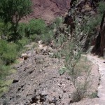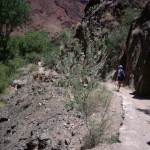 We still had another 3 miles to go downhill. Ugh! By this point, Chris was carrying the big pack and I was carrying the backpack. We switched on and off the first few miles but my knee was started to get weak. Having a trekking pole saved my life when it came to getting up and down the canyon. (I bought mine for 30 dollars the day before but we found out later that you can rent them for $2 a pole per day. Definitely rent them if you are going to do this hike!)