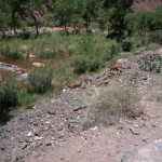 Finally, around noon, we made it to the tunnel that leads to the bridge. We had finally made it down. We cross the bridge thinking we were there but oh no, there is another MILE walk to the Phantom Ranch! Chris and I decided early on that we were going to go straight to Phantom Ranch and buy a 4 dollar cold beer to celebrate as soon as we got down. So we dunked our heads in water and slowly started to make our way uphill. We got our beers, 2 Tecate’s each, carried down the canyon by mule. We also got some bagels because we were too tired to make our freeze dried meals.