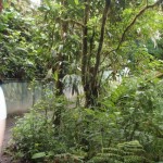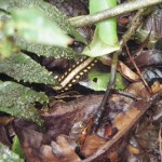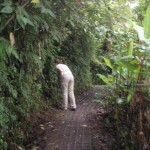 After eating, it was around 9:30 am and there wasn’t another zip line tour until 11 so we went on the hike – good walk, helped us digest breakfast; took some cool pics, tried to swing on our own on a tarzan vine but it swung out over a steep drop and we both almost fell off the side so said f that; saw some crazy caterpillars/centipedes – poisonous for sure; heard people screaming through the forest – thought they were on zip lines; we hurried to finish up our hike so we could make it in time for the zip line tour; Louwra was a little nervous, didn’t know what to expect, but still excited, I was raring to go; we went to the area near gift shop to get outfitted w/ gear (harnesses, gloves, dorky helmets,etc.);