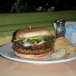 Afterward, we waited for a bus back to hotel el bosque at 1pm; went back, packed our shit, loaded the car then proceeded to head out of monteverde towards jaco but I had to find internet and take care of some business so we stopped at a vegan restaurant w/ free wi-fi; ate HUGE veggie burgers. I had a milkshake, in a funky brightly colored restaurant, saw a parrot (only one the whole trip and only saw the back of it);
