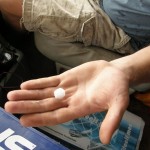 Later that day I was driving and started see rain clouds out on the horizon. They looked really cool because you could literally see where it was raining. Then the lightning began, and we were driving right into the storm. Chris was in the back working and all of a sudden the wind picks up to 40-50 mph and it started POURING. I start freaking out (as you know by now, anything out of the ordinary while driving the rv scares me) and then it starts hailing. Chris tells me to pull over and all of the other cars on the road pulled over too. It was a super bad storm that we waited out for about 10 or 15 minutes. Look at the size of the hail Chris picked up.