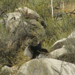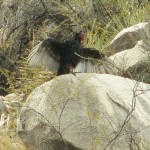 So it started to look like we had only seen the beginning of the storm and Chris thought it might get even worse if we stayed any longer. (Remember we have kayaks, a solar panel, dirk bike, etc. on the outside of the rv.) So we drive on and everything turns sunny again. Chris gets out to check on all that equipment and when he gets back in the rv, he sees this huge bird sitting on a rock right outside out window. He gets out the camera and starts to take really close, cool pictures. We later find out (after watching all of the professional photographers take pictures in the Grand Canyon) that this bird is an endangered California Condor. (Chris and I can do and awesome condor impression if you ask us to.)