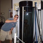 The only bad part of the drive was that the rv doesn’t go above 40 when going up steep mountains so it turned a 75 mph drive into a lot slower one. Hours later, it was 8 pm and we were driving into Albuquerque, NM. We planned on just driving through but Chris really need to buy some hiking boots. (He had ruined his previous ones while working on the rv and decided that it would be no problem to just scoop up a pair on the road…NOT) We find four sports stores that had Columbia shoes and only one of them was still open. Luckily we go to the Sports Authority just in time to pick up some new boots and a walking stick for me. (Once again me=clumsy which doesn’t bode well for steep grand canyon hiking)