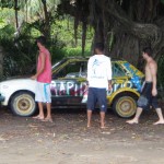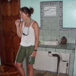 The loud rambling racket of dump trucks traveling along the dirt road beside Hotel Lucy woke us up around 10 am. We had decided to sleep in and skip breakfast with our new friends in lieu of our previous night’s activities; however the sounds of the seaside town just beyond our open window motivated us to get moving. The conditions of the rooms we had rented in Jaco and now, in Montezuma, had caused Lauren’s right eye to develop a mild case of conjunctivitis (small bugs and dirty bed linens infesting your r.e.m. cycles will do that I guess) thus a decision was made between the both of us to get the hell out of there. We packed our belongings and quite literally hiked into town becoming sweatier and more haggard looking with each step we took.