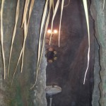 and then grab something to eat while we waited for it to come to shore so you can imagine our dismal dismay when the friendly amigo across the counter of the taxi kiosk informed us that the taxi for that day had already left at 9am. So glad we “slept” in. Faced with the proposition of sticking it out in Montezuma for another night, which after all wasn’t a bad village to hang out in so it wasn’t a bad proposition, we trudged down the main road keeping an eye out for an upgraded hotel to post up in. A sign advertising falafel enticed us to patronize an organic foods/vegan restaurant where the drinks and the air-conditioning were without a doubt the best things on the menu. Lauren ordered some kind of blackberry concoction while I opted for a lemonade with cilantro in it (hers was better ugh). We tried the veggie burgers at this place but they didn’t have ish on the ones we ferociously devoured in Monteverde. Though the food wasn’t really all that satisfactory the décor of the restaurant was so Lauren and I sat for about half an hour letting our meal digest while quietly conversing. We both agreed that the Costa Rican practice of employing the natural world’s beauty as decoration enough was supreme above the American mass-produced doo dads that hang on the walls of establishments such as Crapplebees and Ruby Doucheday. Some people just know what’s up and local flowers and artwork ARE what’s up. The time came for us to make moves, at least to our next destination: the Ylang-Ylang resort.