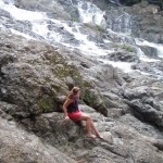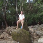 The girls we met the day before kept talking about a waterfall about 20 or so minutes in the jungle out past the Hotel Lucy and with a couple of hours to kill before dinner would be served at the restaurant I thought it’d make an interesting trip. Lauren got herself together as did I and we took off with a burst of energy onto the beach, through the town, and into the jungle. We walked for about ten or fifteen minutes before reaching the first of two waterfalls, the second of which the girls must have been referring to. We clamored up the large rocks making up the fall and dipped our hands in the water the whole time enjoying the rushing sound of the cataract in motion. Lauren and I each chose a rock to perch on for a few moments while we took in the scene around us. Neither of us could help the feeling of euphoria beginning to wash over us. It was a culmination of having spent nearly two weeks in Costa Rica and being part of, if only temporarily, such a serene and primitive environment. I took some pictures and as it was beginning to get dark we both decided it would be best to forgo the second waterfall and head back to the resort for dinner. The walk back was peaceful and slow, both of us taking the time to really see, hear, and feel what was all around us. A mural was painted on the side of a sports enclosure, one of the late Michael Jackson’s songs was blaring from inside a bar, and people were riding ATV’s up and down the dirt roads weaving in and out of the throngs of pedestrians and occasional stray dogs.