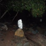 tinkering with her iPod before choosing to play Iron and Wine. After a few unsuccessful solo attempts at brandishing a beach bonfire (humidified driftwood is NOT easily susceptible to flame) Lauren pitched in and some more brainstorming went down and, ta-da, just like that man made fire. <-woman too, duh-> Lauren returned to her spot on the patch of fleece and I joined her. Though the lifespan of the fire was short both of us continued to lie on the blanket, our eyes fixed on the tree branches and leaves hanging directly over us and the navy blue sky beyond. The rich green leaves grouped together in bunches began to take on different shapes in both of our minds and we discussed them as children discuss the possibilities of existence in passing clouds. We might have hung out on the darkened beach for an hour or so before growing tired, putting out the glowing embers of the fire, and packing up our things for the trek back. Along the way we paused and looked out over the churning onyx ocean contrasted only by the white crests and caps of the waves. It had all been a surreal lullaby which nudged us along back to our tent and, along with the nocturnal chatter of insects, sung us to sleep.